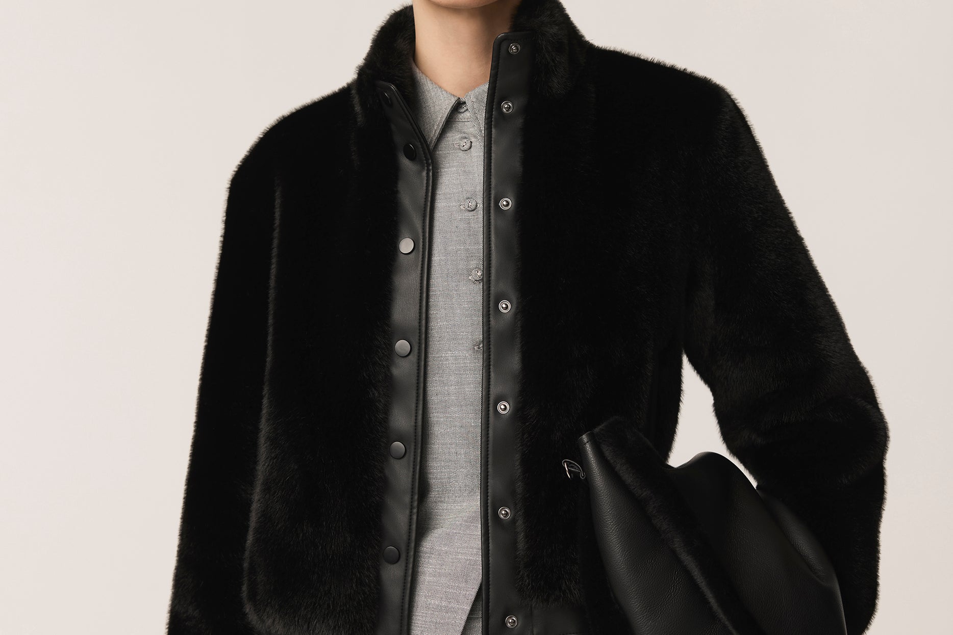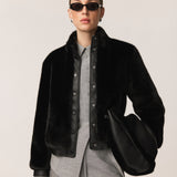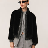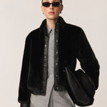 Jolie Bomber Jacket Vegan Luxe Pile Faux Fur Black