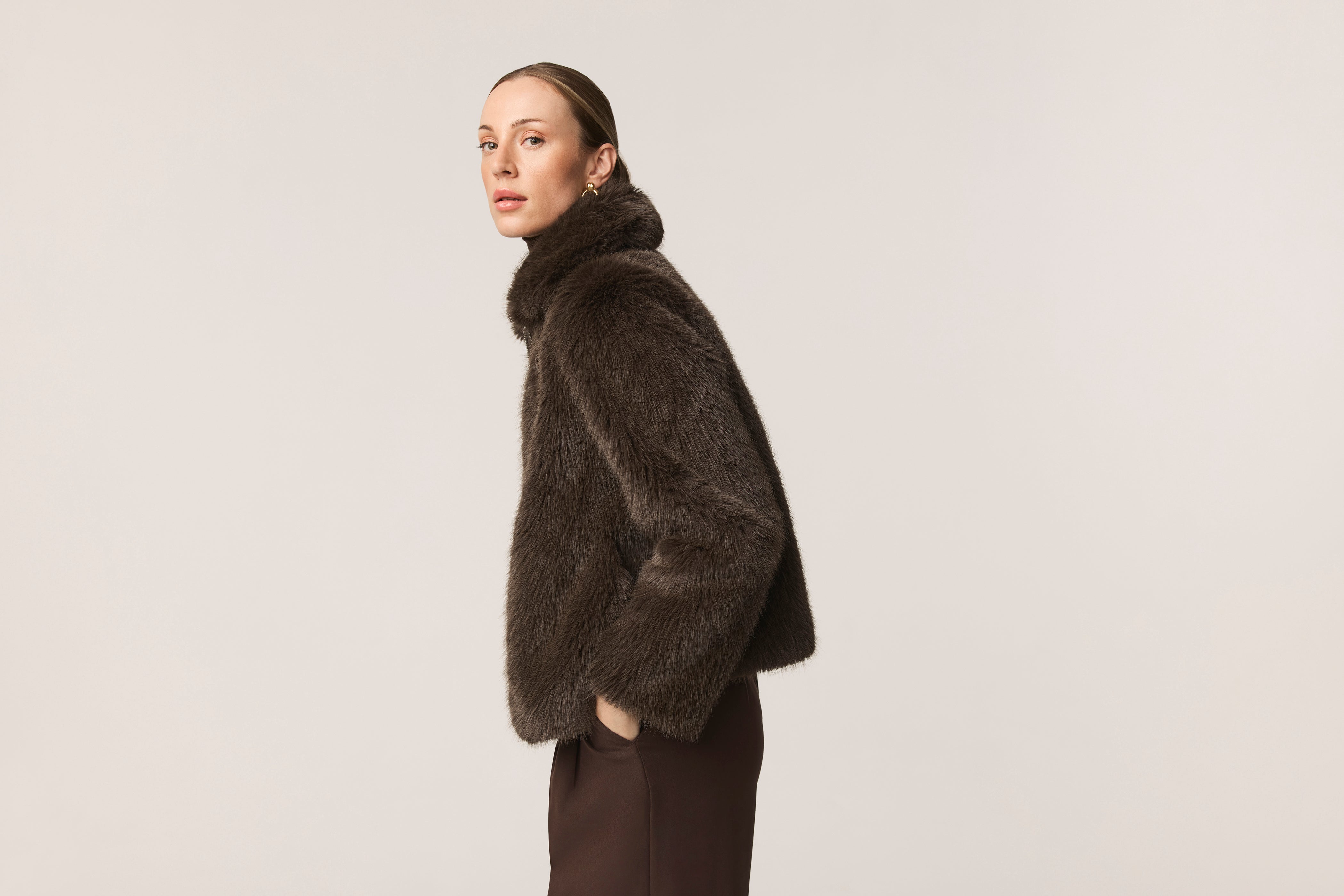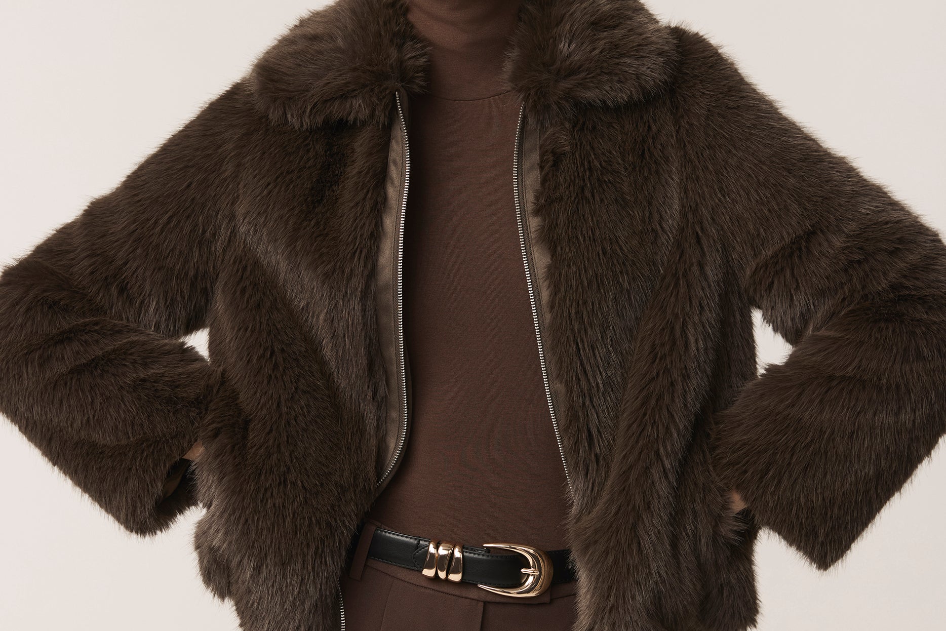 Introducing the new-season "star of the show"  - Karla, the vegan faux fur bomber jacket crafted in the chicest seasonal shade of brown.