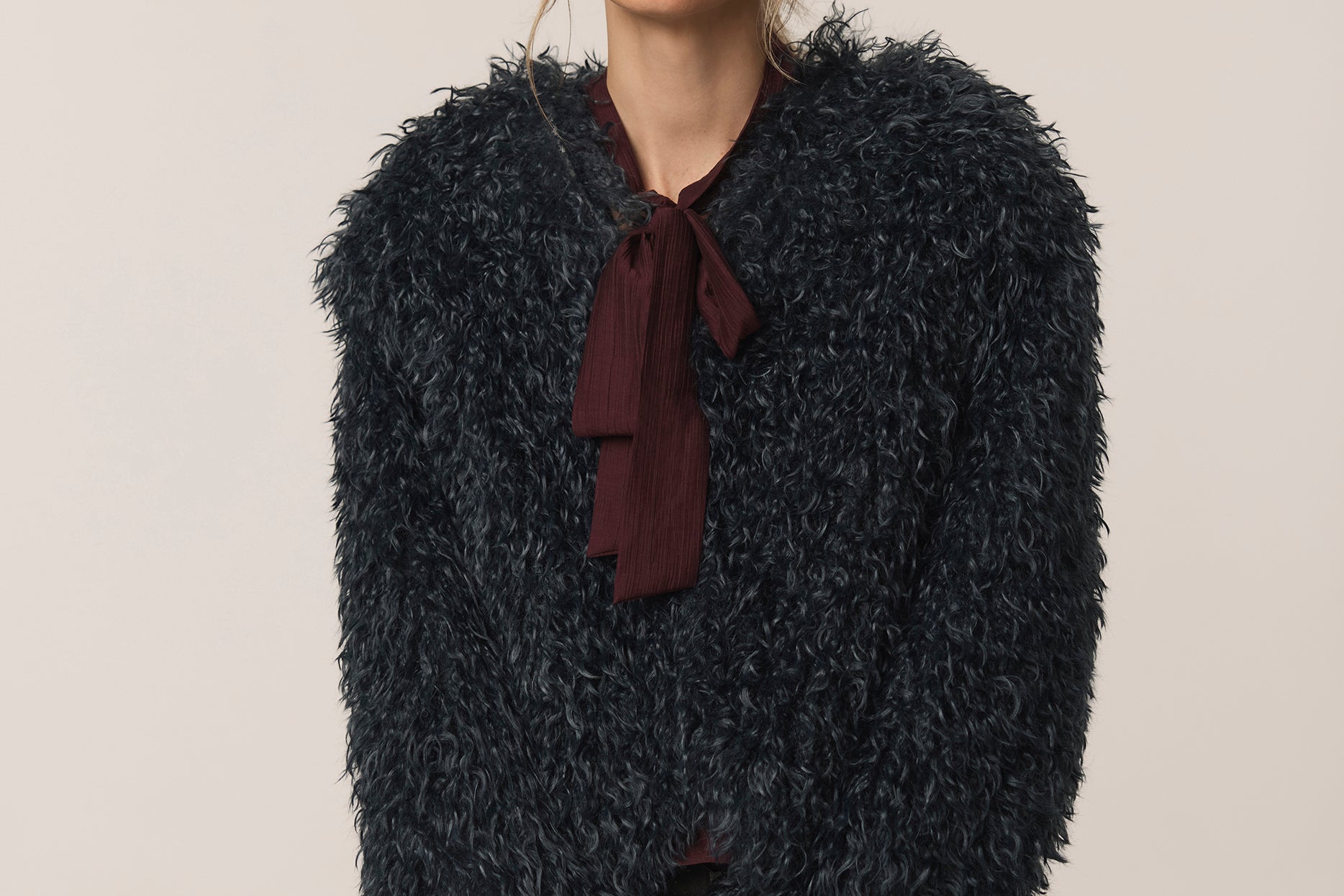 Sadie Faux Mongolian Cropped Vegan Jacket