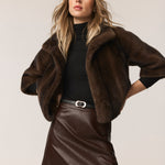 Trinny is the cropped faux fur jacket your new Winter wardrobe has been waiting for. Designed in a sumptuous shade of rich chocolate, she embodies effortless glamour with a modern silhouette.